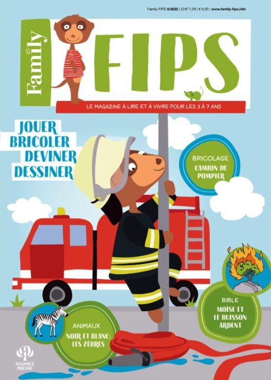Cette toute nouvelle revue franco-suisse (entre Aubonne et Annecy), fondée en 2022, paraît tous les deux mois, et remplace l’ancienne publication Tom & Carotte. Mais que veut dire FIPS ? En fait, il s’agit du nom du suricate qui est la mascotte de la revue ! Dans ce numéro ci-contre, le lecteur trouvera à la fois du profane (recettes de cuisine, article sur les pompiers, sur les zèbres,…) et du biblique : le récit du buisson ardent, avec une question théologique (« Comment entendre la voix de Dieu ? »), ainsi qu’une proposition de verset biblique à apprendre par cœur.